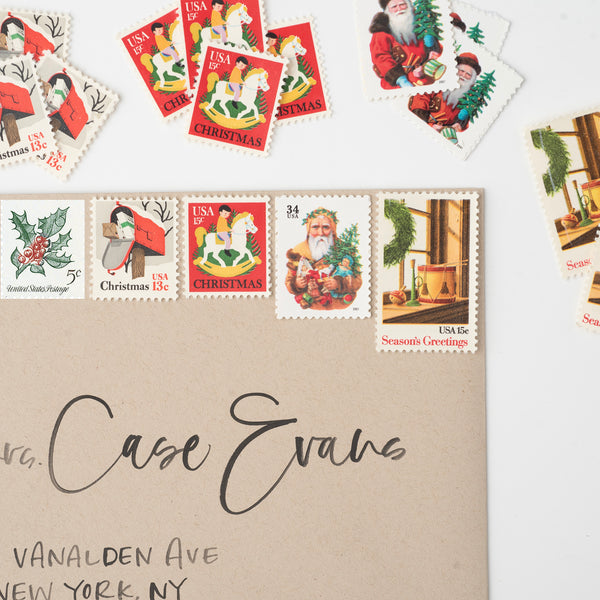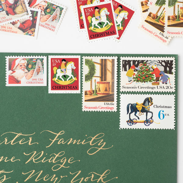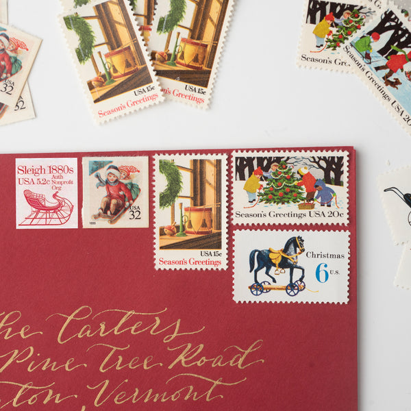 Quick shop PREORDER // Winter Sleigh Ride Vintage Postage Set // UNUSED // Sled // Poinsettia from $6.00