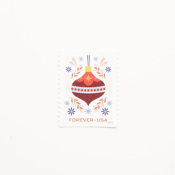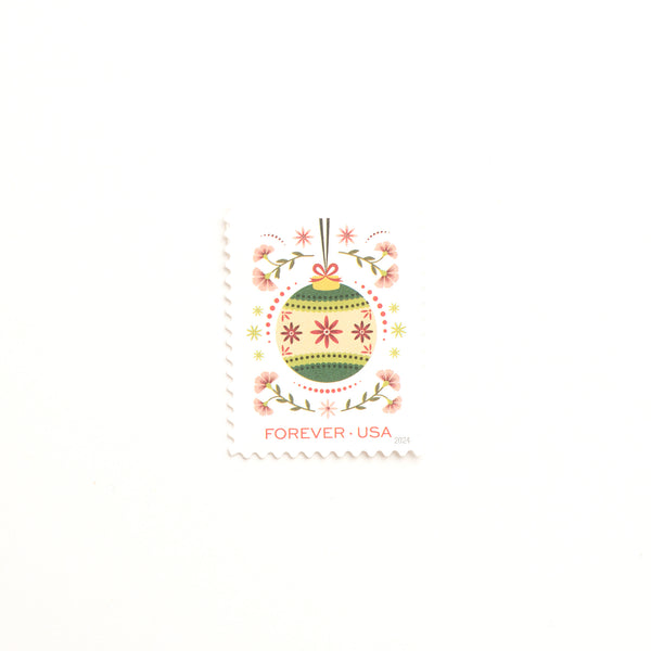 Quick shop Forever Holiday Joy Ornament Postage Stamps // Green Ornament And Pink Flowers // UNUSED $20.00